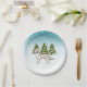 Cream Golden Retriever Dog Blue Winter Christmas Paper Plate