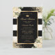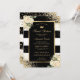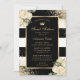 Elegant black and gold floral sweet sixteen birthday invitation featuring a gold frame adorned with cream/ivory roses and gold glitter.