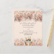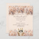 A modern, stylish and glamourous invitation for a wedding reception. Cream, peach coloured background, decorated with a basket with flutes, sparkling wine flasks and peach, cream coloured flowers. Personalise and add your names and the details.