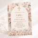 A modern, stylish and girly invitation for a Baptism. Cream, peach coloured background, arch frame, decorated with cream coloured flowers. Personalise and add your name and the details.