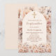 A modern, stylish and romantic invitation for a Confirmation. Cream, peach coloured background, arch frame, decorated with cream coloured flowers. Personalise and add your name and the details.