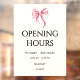 Simple and cute bow opening hours window cling for your small business. Illustrated and designed by Patricia Alvarez.