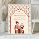 Traditional Sikh wedding welcome sign featuring an elegant illustration of a Punjabi couple with modern typography on beautiful Indian pattern background with arch.