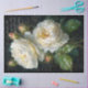 Bring timeless romance to your projects with this cream rose bloom decoupage design. Featuring painterly cream and soft yellow roses with green foliage over a dark script background, this versatile paper is perfect for furniture upcycling, junk journals, shabby-chic bar cart décor, and wedding crafts. Each set includes three generously sized sheets. Copyright Hautegraphique.