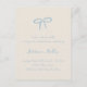 Simple and sweet, this "something blue" bridal shower invitation features handwriting style fonts and a delicate bow graphic to celebrate the bride to be in on-trend and modern style. The budget-friendly postcard format makes hosting easier on the wallet when weddings can end up costing so much for bridesmaids and family members.