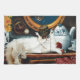 A charming cream coloured cat lounges elegantly in a whimsical steampunk tea party setting in a steampunk submarine kitchen. Featuring a vintage top hat with goggles, antique clockwork details, delicate teapot décor, and a nautical porthole revealing an underwater tentacle surprise, this imaginative design blends Victorian charm with playful fantasy. Perfect for cat lovers, steampunk fans, and anyone who enjoys quirky, storybook-style artwork.