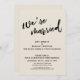 This suite's distinction is due to the modern, handwritten script used for accent phrases. In this piece, the hand-lettered font was used to create a graphic depicting the words "we're married". Use the template fields to add your personal details and make this unique, modern design your own. The background can be changed to any colour you prefer. Please reach out with any special requests or for customising assistance. // 100 //