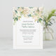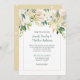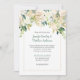 A cascade drop of watercolor wedding invitations with cream and white roses and gold and green leaves and other greenery over a pale gold frame. The background is pale gold with scattered blossoms. The template is easy to personalise - your name is an elegant handwritten calligraphy script and the body is a modern font.
