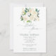 Cream White Roses Gold Green Leaves Bridal Shower Invitation