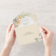 AVAILABLE WITH OR WITHOUT A QR CODE TO SCAN IN THE RSVP AREA. This design features cream, yellow, and vanilla watercolor flowers surrounding an oval frame on a soft cream background. Add a QR code to your invitation so that gusts can quickly access your wedding Website for details, directions, menu options, and more, or add your gift registry Web URL. Personalised All-In-One invitations are a unique combination of both a beautifully printed custom invitation with an easy to tear off perforated RSVP postcard. And they are so easy to use! You simply fold, then seal the back flap with the three included clear stickers, and mail. And when your guests receive your custom invite, they just tear the perforated RSVP Card off and drop it back in the mail to you!