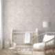 An elegant rococo-inspired pattern featuring hand-drawn carousel horses and floral motifs in soft beige and muted pastel tones. The dense, symmetrical layout and subtle plaster texture create a whimsical yet refined vintage look ideal for nurseries, storybook textiles, and classic interiors.