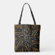 Tote Bag all over print shoulder style fashion statement stylish storage accessory printed with a Creamy Golden Yellows Raked Pattern On Black six sided symmetrical repeat patterned geometrical original graphic art design illustration by TheFabricSeal at Zazzle #ZazzleMade https://www.zazzle.com/store/thefabricseal