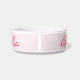 Create your own custom, personalised, girly dark pink classy stylish script / typography custom name at front and back, with three pink stars in the middle and light pink background, ceramic, pet cat kitten dog doggy puppy food bowl. Simply enter your pet's name / your text, to customise. Great for birthday, christmas, holidays, new years, and more, for pet cat / dog owners, friends, and family.