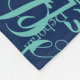 Add your own name to make a seamless typography pattern design on a nice blue fleece blanket. A pattern of teal colour names in different font styles and sizes.