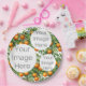 Brighten your party with these custom paper plates featuring a charming orange tree pattern. Easily add your own photos and personalised text for a unique touch. Perfect for summer gatherings, birthdays, or garden-themed events with a fresh, fruity vibe.