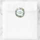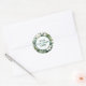 Elegant stylish and modern, this round custom wedding sticker features a delicate nature eucalyptus wreath in a watercolor painting illustration style. Perfect for create your own wedding favors, gift bags, or envelope seals, it includes customizable bride and groom names in a clean white font on a deep navy background.