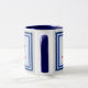 An elegant and modern monogrammed design of a blue square frame, ships and anchors... with custom name and initials of the captain of the seven seas