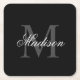 Create Your Custom Name Monogram Calligraphy Black Square Paper Coaster