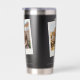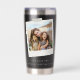 Create your own custom photo insulated tumbler. This tumbler cup features two of your favorite pictures in a square shaped instant film style frame and personalized retro typewriter text for any occasion. A great gift for family and friends or your own photo memory keepsake.