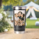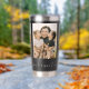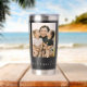Create your own custom photo insulated tumbler. This tumbler cup features three of your favorite pictures and personalized handwriting calligraphy text for any occasion. A great gift for family and friends or your own photo memory keepsake.