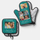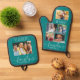 Create Your Own 6 Photo Collage Family Name Teal Oven Mitt & Pot Holder Set