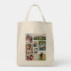 The printing came out very well, better than I had anticipated. The natural color fabric is sturdy with strong seams and comfortable handles. This tote fits easily over my shoulder. As it is filled, the bottom flattens out--very cool! I would buy this product again. This grocery tote holds a lot of groceries! The image quality was very good. The colors were a little darker than I had expected. The darkness may have been due to printing on a natural color fabric rather than on white. The cat design is attractively centered on the tote. The spirit of the design is very lively, just as it appears on the Zazzle website.