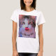 For a fabulous personal touch you can easily replace the template kitty photo with your own pic - pets, kids, your sweetie, vacation, scenery, your house, your art, your favourite place, your smilin' face. If you don't want text, simply leave the text box blank. This template is best for portrait style photos - vertical placement. Your photo will fill the available space. Choose from an abundance of colours and styles for him, her, them or Cousin It. Shown on basic ladies' fashion white shirt. Visit me on Twitter @Sylvia_FineArt. Have a great day.