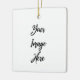 This is a lovely ornament, and great that you personalise the back with details of birthday, weight, etc.. My only tiny disappointment is the "My First" doesn't stand out very well on the background. More than happy with the printing of the photo and the writing on the back.