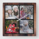 Create your own Christmas family photo collage, on rustic wood, wall clock.