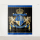 Create your very own aristocratic Coat of Arms, Emblem, Insignia or Family Crest with this beautiful, classic escutcheon or shield design. Cobalt Blue patterns decorate a shield topped with golden crown and flanked by mediaeval heraldic lion or griffin. A matching top banner holds your custom wedding date / birth date / slogan or battle cry. The shield has space for your monogram initials. Bottom banner carries your family name. There is also space below for your favourite quote, motto or message. Replace the sample text with your own for a personalised gift. I designed this to work for families, couples and individuals. Makes a wonderful gift for International Heraldry Day, Mediaeval or Fantasy-themed parties, Wedding, Anniversary, Birthday, Retirement, Promotion, Father’s Day, Bachelor Party, Wedding Shower, Graduation and other special occasions.