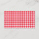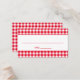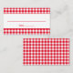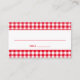 Red and white rustic gingham check pattern place cards for a country barn wedding.