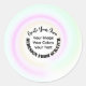 The sticker is made on wonderful paper and had no problem sticking to the bag that I purchased to put it on. I wanted to find a design that would be cute for the bride and groom and this one fit the bill as it has cute "bees" buzzing around and the wedding was taking place in a town called "Bee Cave". The packaging was great and protected the stickers. The website is easy to navigate and there are so many color choices. I had no problem finding a color that the bride was using on everything else selected. The design was adorable and there were many to choose from. You can make the figure as larger or smaller and you can place the photo and writting whereever you want to in the sticker. The printing is fabulous..better than expected.