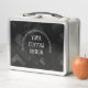 This is a standard metal lunchbox that appears to work just fine. We designed this box ourselves with an uploaded photo and custom text on the front and back. It looks absolutely beautiful except the front of the lunchbox is not centered like it shows in the photo. The print borders don't align with the inset flat part of the box where the preview photo online showed it perfectly centered in there. The back looks nice and centered though.