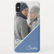 This design features an abstract blue and white shape with a personalised name and where you can add your own photo or image. Personalise by editing the text in the text box or delete the text for no name.