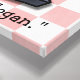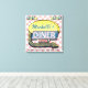 Create your own custom, 1950's style diner sign wall canvas using this easy template. These cool retro canvases have a slightly distressed pink-and-white chequered background with a sign on top that says "DINER" and "OPEN" in neon with space for you to add your own first or last name - or any other word you'd like. The sign also has a lighted arrow graphic and space for you to add a slogan and the year your diner, home kitchen or 50s theme bar was established.
