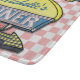 Create your own custom, 1950's style diner sign cutting board using this template. These cool retro cutting boards have a slightly distressed pink-and-white chequered background with a sign on top that says "DINER" and "OPEN" in neon with space for you to add your own first or last name - or any other word you'd like. The sign also has an arrow graphic and space for you to add the year your diner, home kitchen or 50s theme bar was established. It's all done in shades of pink, white, black, blue, yellow, grey and red. Just fill in the DIY template or click "Customise It" if your text runs long & you need to resize, rearrange or change text colours & fonts. Please Note: This design works best on the dimensions shown.