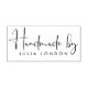 An elegant and modern rubber stamp for your handmade creations. The words "Handmade by" are printed in a gorgeous modern handwritten calligraphy script. Below your name appears in timeless, minimalist sans serif Futura. Perfect for a small business to personalise your orders, or for your custom DIY gifts.