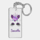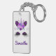 Create a custom unicorn keychain. Add a name. Purple unicorn with a purple flower reverse.