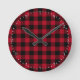 Wall Clock (HEBREW Numerals): Create Your Own buffalo plaid red and black pattern styling - personalised professional branded clock with option to add custom logo / photo and text. Simple way to personalise your business, create cool gifts for your family & friends for every occasion.