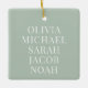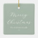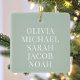Create your own personalised Christmas ornament featuring your family names in modern minimalist typography on sage green colour background. Reverse side featuring Merry Christmas or custom text in elegant calligraphy alongside name and year.