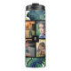 Photo collage monogrammed thermal tumbler with 4 photos on watercolor tropical leaves pattern.