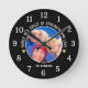 Modern photo wall clock with the quote "FAMILY IS A CIRCLE OF STRENGTH AND LOVE" and personalised with family name for a keepsake gift for family members.