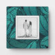 Made to look dimensional, a teal tropical leaf plant pattern creates a beautiful frame for your favourite photo on this tabletop plaque with a built-in easel. The image is put directly on the hardboard panel for a stunningly crisp image with an easy wipe clean surface. Great as a gift or to display your favourite photo in your home. TIP: If using square plaque, you might need to crop your photo to a square BEFORE uploading it for best results.