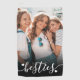 This custom golf towel features your favorite best friend photo printed in a clean, modern layout. The design includes the word “besties” in a handwritten script font with small heart details, placed at the bottom of the photo over a soft black gradient to help the text stand out while keeping the focus on the image.