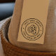 Create your own custom wood art stamp, ideal for bakery owners! Featuring a round typography displaying your company name and your slogan in a sans-serif font, with a double border with thin and bold lines. In the middle there is an illustration with hand-drawn cookies that you can easily replace with your own logo! Simply click on "Personalise this template" and take home the perfect addition to your promotional strategy!