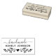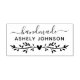 Beautiful rubber stamp in script calligraphy with your name with greenery and heart in the centre.