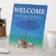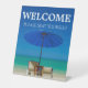 Create Your Own Host Station Welcome Be Seated Sign with 100% custom text (front and back) and beach scene photo. Fill out the text templates with your welcome message or leave as is, and your new sign is ready! Great for coastal area cafes and bars, and can be modified to suit any business or location. If you need help getting your text just right, please feel free to message me! I can also design any other product Zazzle offers with this background in a personalised template on request.
