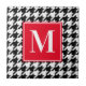 Black and white houndsooth pattern with a modern single initial or letter on a bright red square with a simple white border.