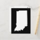 A simple blank modern minimalist design featuring the map shape of the state of Indiana in white against solid black.