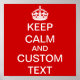 Make your own "Keep Calm and Carry On" poster design using this simple template and how-to instructions. Inspired by an antique WWII British poster slogan, "Keep Calm" designs are very trendy and popular. Use the "Personalise It" field to easily make it your own. Even the white crown can be "changed" if you have your own graphic. Adjust the text fields to say whatever you'd like: your favourite hobby, occupation or funny saying. When you're done, if you need to make more tweaks or resize and move your image or text to fit, click "Customise It" and rearrange however you'd like. Available on more items in our store.